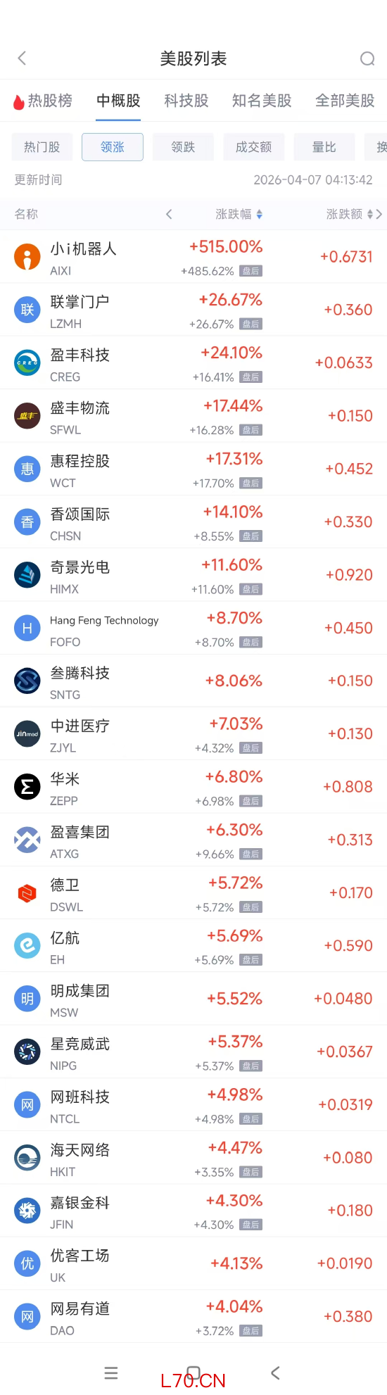 (截图来自新浪财经APP 行情-美股-中概股热门板块)下载新浪财经APP